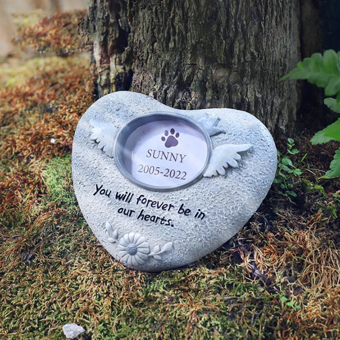 The pet headstone we received included our dog’s favorite toy and ashes. It’s such a special memorial.